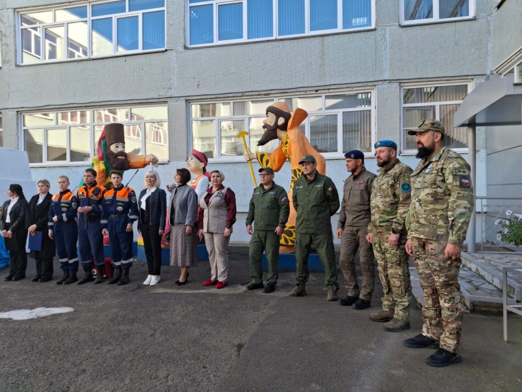 С торжественной речью к ребятам обратилась Ольга Александровна Колесова, заведующий территориальным отделом образования Ленинского района. Слова приветствия произнес руководитель Кузбасской Ассоциации ветеранов специальной военной операции, участник СВО Алексей Николаевич Савин.