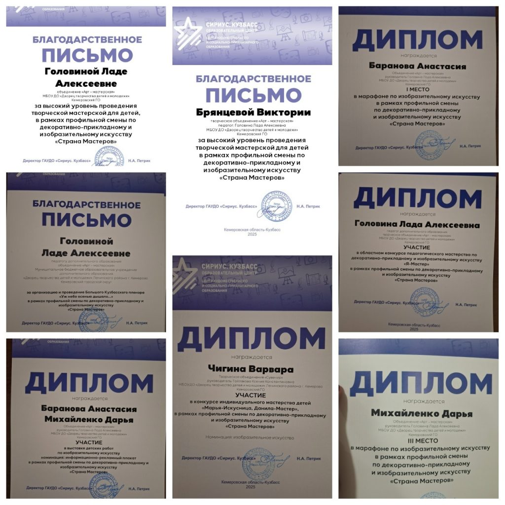 С 23 по 28 октября 2025 года творческое объединение «Арт – мастерская» под руководством Головиной Лады Алексеевны Дворца творчества детей и молодежи Ленинского района г. Кемерово побывали на профильной смене «Страна мастеров». Участники смены —победители и призеры региональных конкурсов по декоративно-прикладному и изобразительному искусствам.