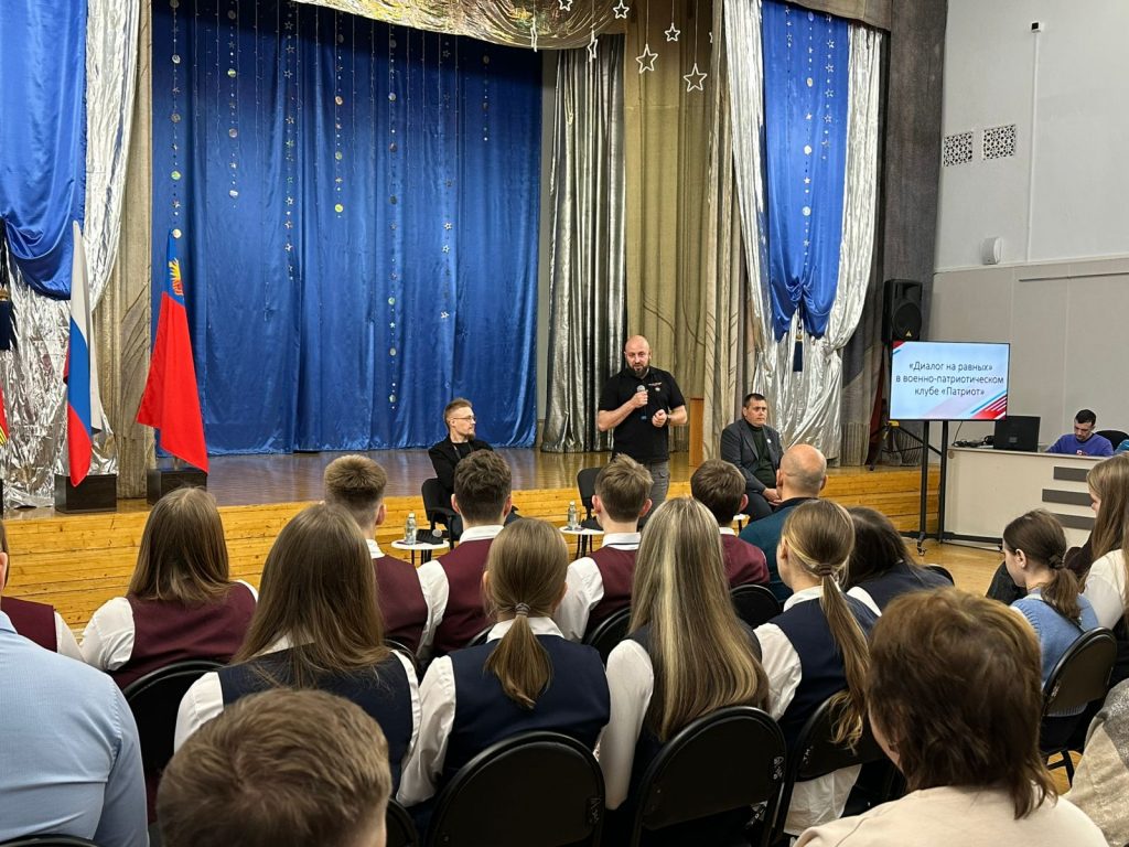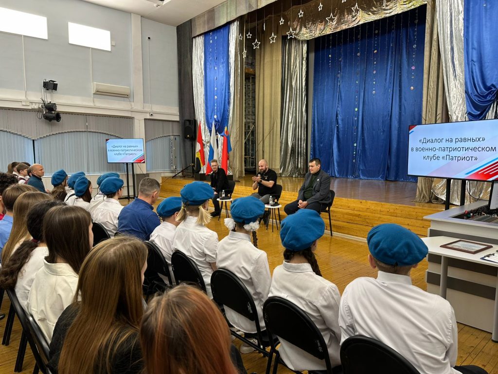После теоретической части состоялась встреча-беседа учащихся с ветеранами боевых действий, посвященная Году защитника Отечества и празднованию 80-летия Победы в Великой Отечественной войне, в формате «Диалог на равных» с участниками боевых действий. Почетными гостями диалога стали Савин Алексей Николаевич, ветеран боевых действий, участник СВО, обладатель двух медалей «За отвагу» и медали «За боевые отличия», председатель Кузбасского союза ветеранов СВО; Воронов Андрей Анатольевич и Литвак Алексей Алексеевич, ветераны СВО, члены Кузбасского союза ветеранов СВО. Между почетными гостями и ребятами-юнармейцами военно-патриотического клуба «Патриот» завязался очень интересный диалог.
