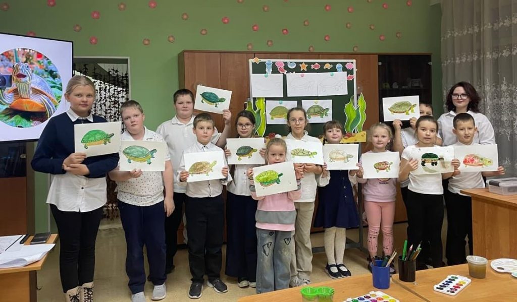 Осваивая художественные приемы при выполнении рисунка, ребята смогли узнать множество интересных фактов о жизни красноухих черепах, их повадках и особенностях. Сюрпризом для учащихся стало непосредственное знакомство с живой красноухой черепахой, которая стала вдохновителем и натурщиком для творческих работ. Наблюдая за реальным животным, дети смогли лучше понять его анатомию, текстуру панциря и окрас.