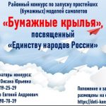 09.01.2026 в 12.00 в МБОУ ДО «Дворец творчества детей и молодежи» Ленинского района города Кемерово по адресу: ул. Волгоградская, 36 состоится районный конкурс среди учащихся по запуску простейших (бумажных) моделей самолётов, посвященный «Единству народов России».