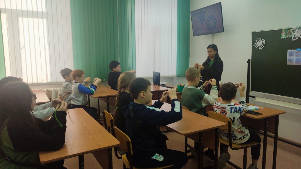 На локации «Зимняя лаборатория» юные исследователи изучали образцы снега и льда, собранные непосредственно перед началом эксперимента, а затем изготовили снежинки, имеющие бесконечное множество форм, из синельной проволоки.
