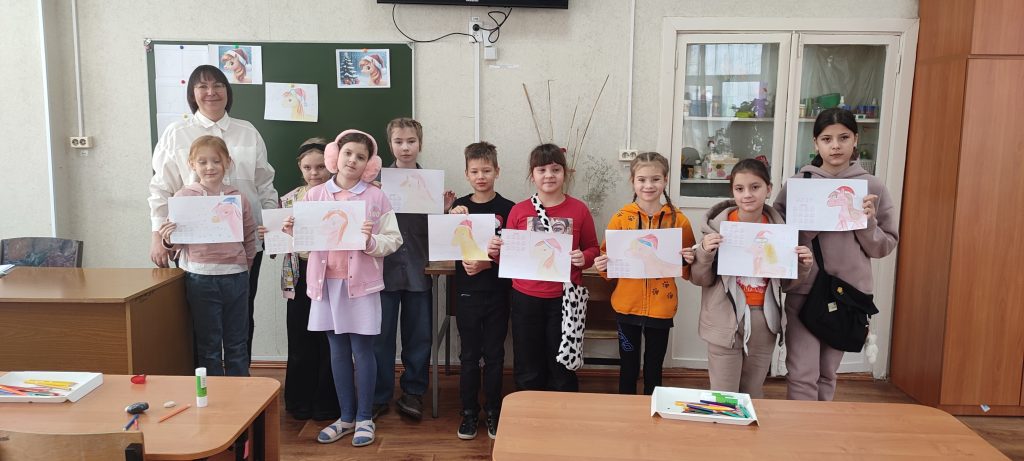 В «Художественной мастерской» ребята выполнили рисунок в технике акварель. Символ года, воплощенный в ярких красках, обещал быть удачным и счастливым.